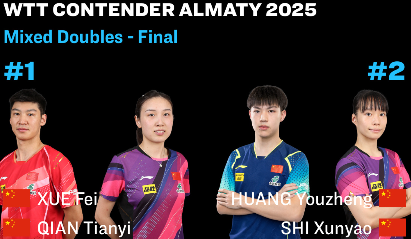 wtt常规挑战赛阿拉木图站,混双决赛:薛飞/钱天一 VS 黄友政/石洵瑶